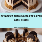If you’re a lover of all things cookies, cream, and chocolate, this Oreo Chocolate Layer Cake with Cream Filling will quickly earn a treasured spot in your baking repertoire. Imagine four ultra-moist layers of decadent chocolate cake, each generously sandwiched with fluffy whipped Oreo cream, all wrapped in a cookies-and-cream-studded buttercream, then finished with playful Oreo garnishes. Whether you’re celebrating a birthday, hosting a party, or simply craving an over-the-top treat, this cake is a showstopper that’s as fun to make as it is to share (and eat!).